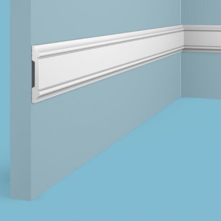 Карниз К04710-1. Чёткая геометрия рисунка изделия гармонично вписывается в интерьеры в современных стилях, в том числе лофт и хай-тек. Идеально скрывает неровности стыка стены и потолка.